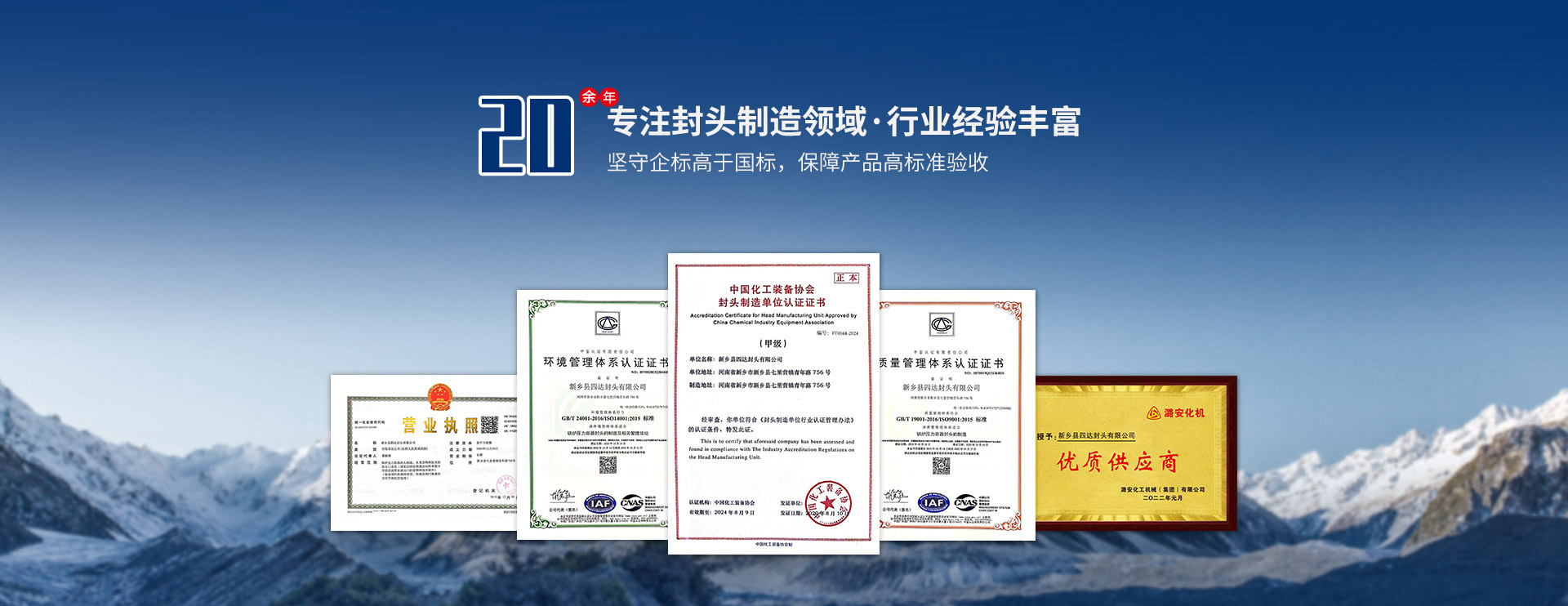 遵循國家標準、美國ASME標準生產,取得A3級鍋爐壓力容器部件生產許可,中國化工裝備協會封頭甲級認證,為產品提供資質保障;